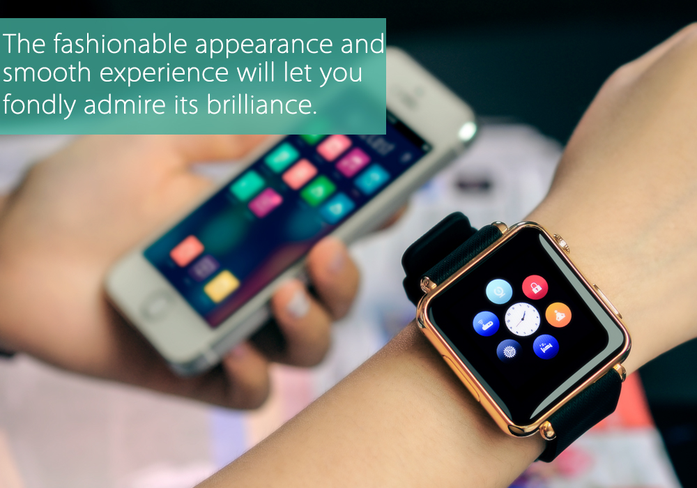 Este reloj alternativa de Apple tiene un procesador MTK6260A y se ejecuta en un sistema operativo personalizado. Reúne todas las ventajas de un reloj y teléfono en un solo dispositivo y puede trabajar con iOS y Android Smartphones e incluso ofrece una cámara.